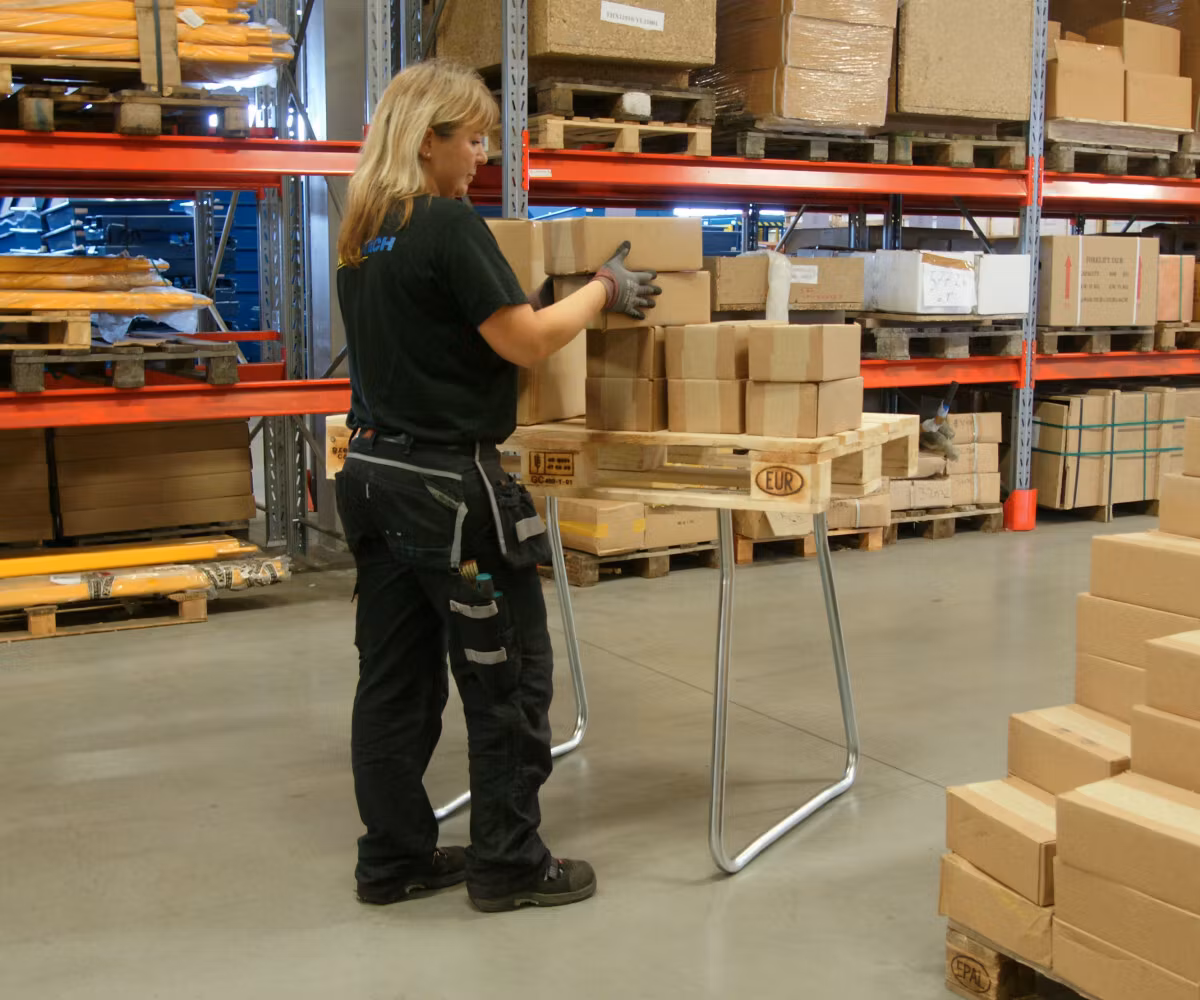 Möjligheternas bord! Lastpallar finns överallt. På 20 sek klämmer du fast pallbenen och får ett stabilt arbetsbord, exponeringsbord eller plattform. Kapacitet 5