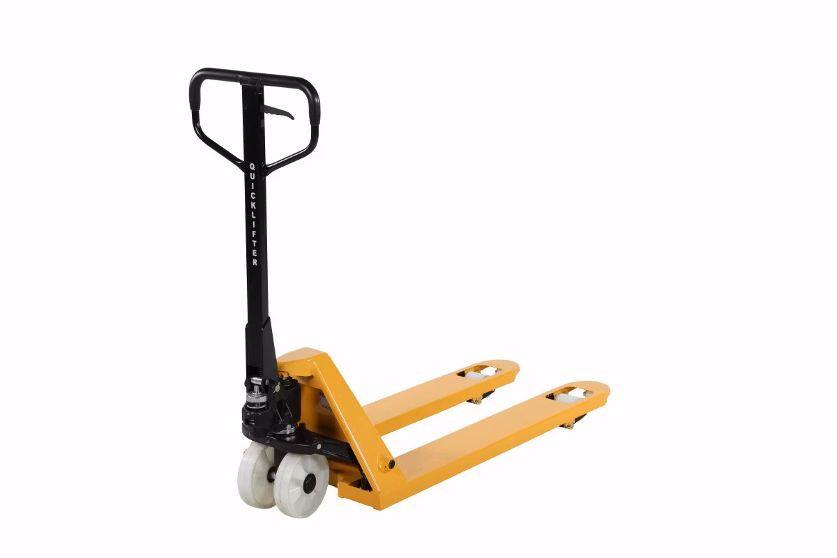 Gaffelvagn med snabblyftfunktion upp till 150 kg som standard, lyfter pallar på ett pumpslag. Avrundade gaffelspetsar och 230 graders svängradie förenklar all godshantering. Utrustad med greppvänligt beklätt handtag, överbelastningsventil, underhållsfria kullager och dubbla klätterhjul. Finns i ett flertal gaffellängder och hjulalternativ.
