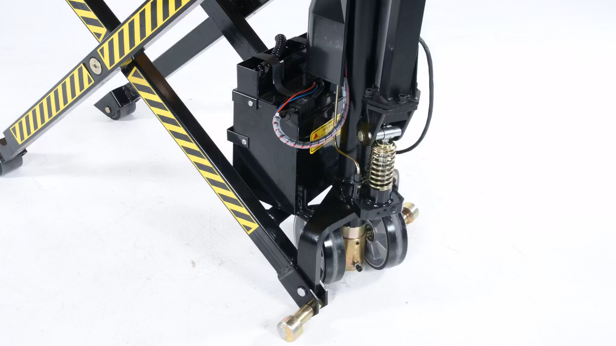 Kompakt konstruktion med batteri och pumpenhet mellan chassit och cylinder ger överlägsen styrförmåga och åtkomlighet. Används ofta som ergonomisk hjälpmedel för att spara rygg, nacke och axlar. Går bra att både pumpa och sänka manuellt om batteri skulle vara urladdat. Lyft till maxhöjd utan last 11 sekunder, med last (160 kg) 19 sekunder.